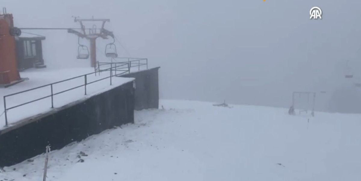 Yağış nedeniyle bölgedeki otel ve teleferik tesislerinin çatıları ile pistler beyaz örtüyle kaplandı.