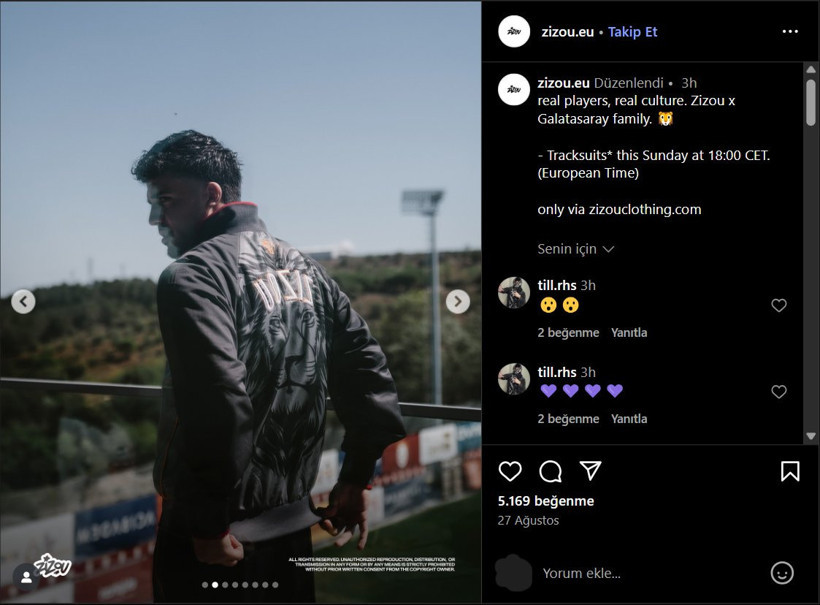 Almanya merkezli sokak giyim markası Zizou’nun lisanssız olarak Galatasaray logosunu kullandığı koleksiyonun çekimleri Kemerburgaz Metin Oktay Tesisleri’nde gerçekleştirildi.