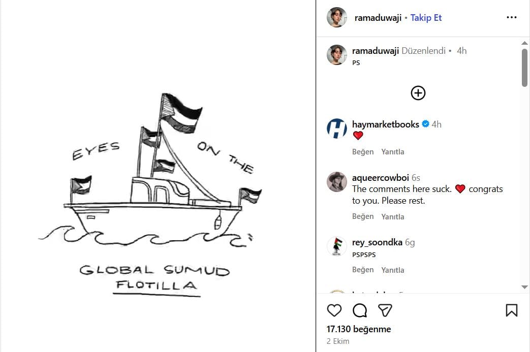 Duwaji’nin güçlü siyasi mesajlar içeren eserleri, Spotify, The New Yorker, The Washington Post, BBC, Apple ve Tate Modern gibi dünyaca ünlü platform ve kurumlarda da yer aldı.